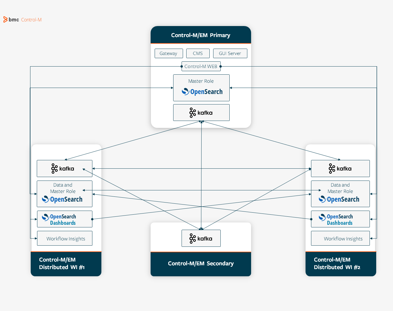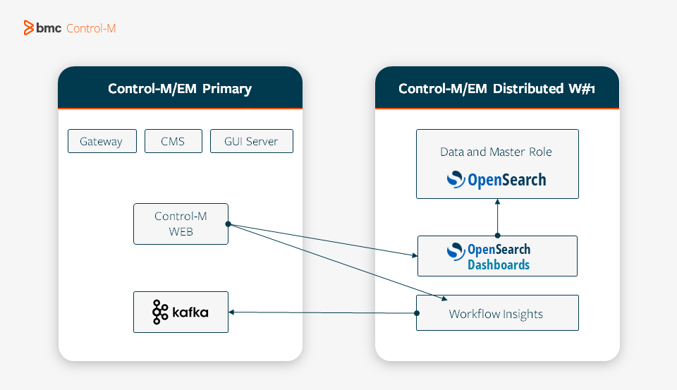 • Elasticsearch: (Deprecated in Control-M) A third-party search engine based on the Apache Lucene library that Workflow Insights uses to gather information and perform queries, and which is included on the Control-M/EM Primary. BMC recommends that you upgrade to OpenSearch, as described in OpenSearch Installation.