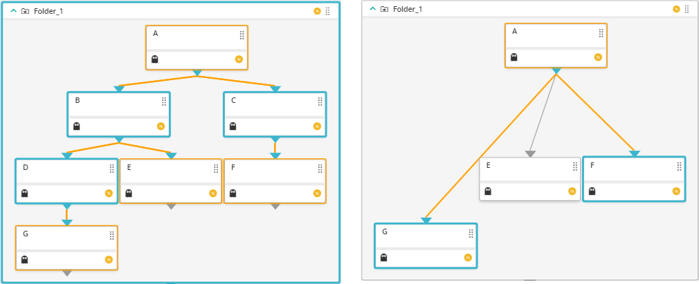 Exact Prefix Defined: An event line appears between the two jobs or SMART folders when a global event prefix is defined that exactly matches this global event.
