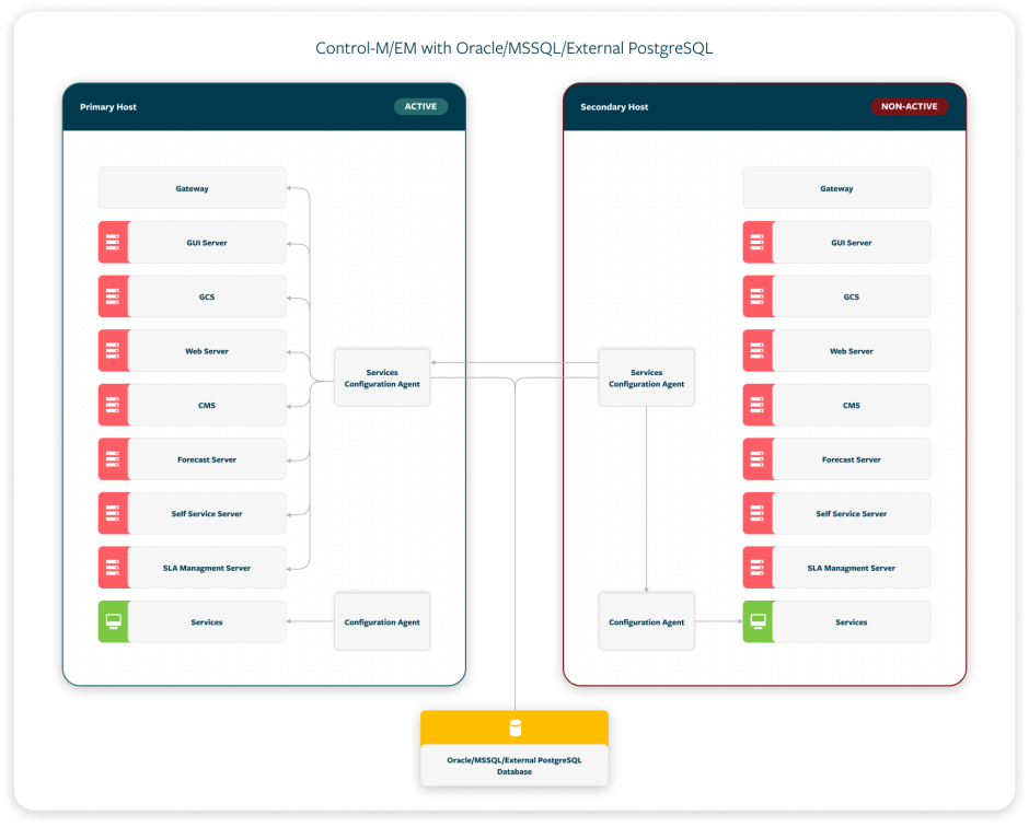 Control-M/Server High Availability Architecture (Oracle/MSSQL/External PostgreSQL)